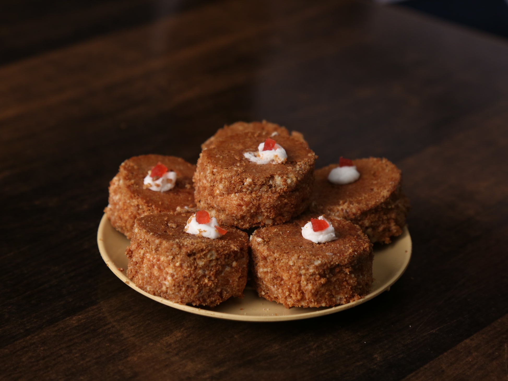 Experience the elegance of our Japanese Cake, featuring a soft cashew base with a smooth vanilla cream filling. Each bite offers a harmonious blend of delicate textures and rich flavors, perfect for any special occasion.